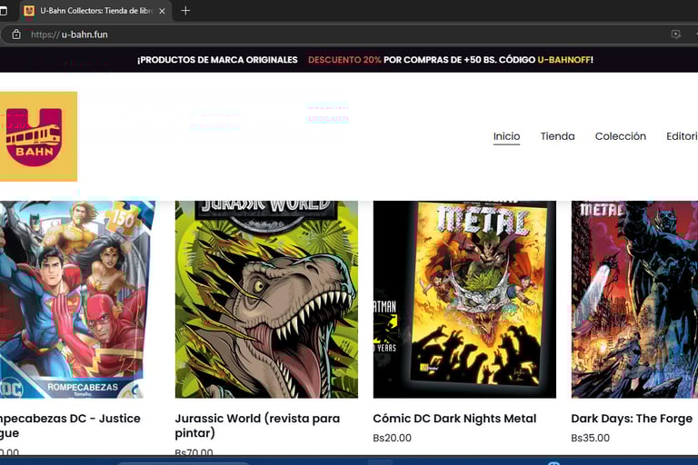 Comercializadora y distribuidora en formatos físicos y on-line, a través de venta minorista en nuestra web store www.U-Bahn.fun y distribución mayorista en retailers, tiendas especializadas, librerías, supermercados, ferias, eventos, etc.